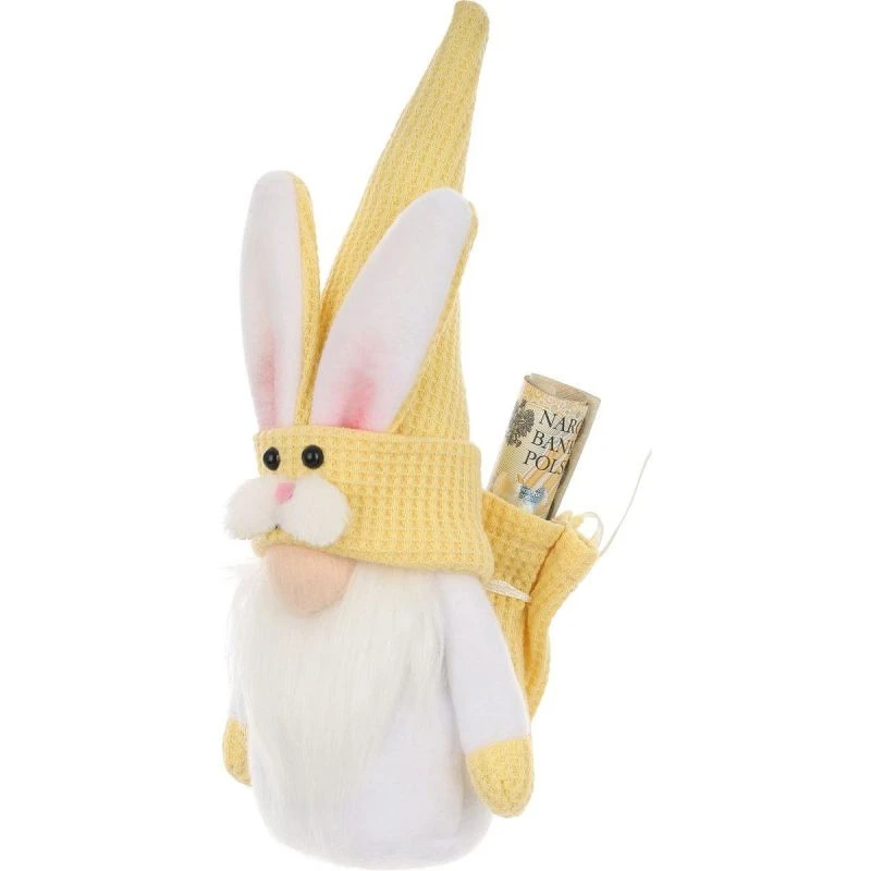 SKRZAT ZAJĄCZEK ŻÓŁTY 20CM Z WORKIEM NA PREZENT DEKORACJA WIOSENNA udekoruje Twój dom w czasie Świąt Wielkanocnych i nie tylko. Pełen wdzięku, w ciekawych barwach skrzat z czapką w kształcie zajączka, przykuje uwagę zarówno dzieci jak i dorosłych.