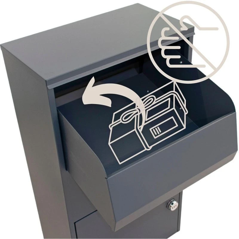 Intuicyjny system wrzutowy umożliwia szybkie doręczenie paczki, a wygodne drzwiczki otwierane na bok pozwalają na jej łatwe i bezproblemowe wyjęcie.