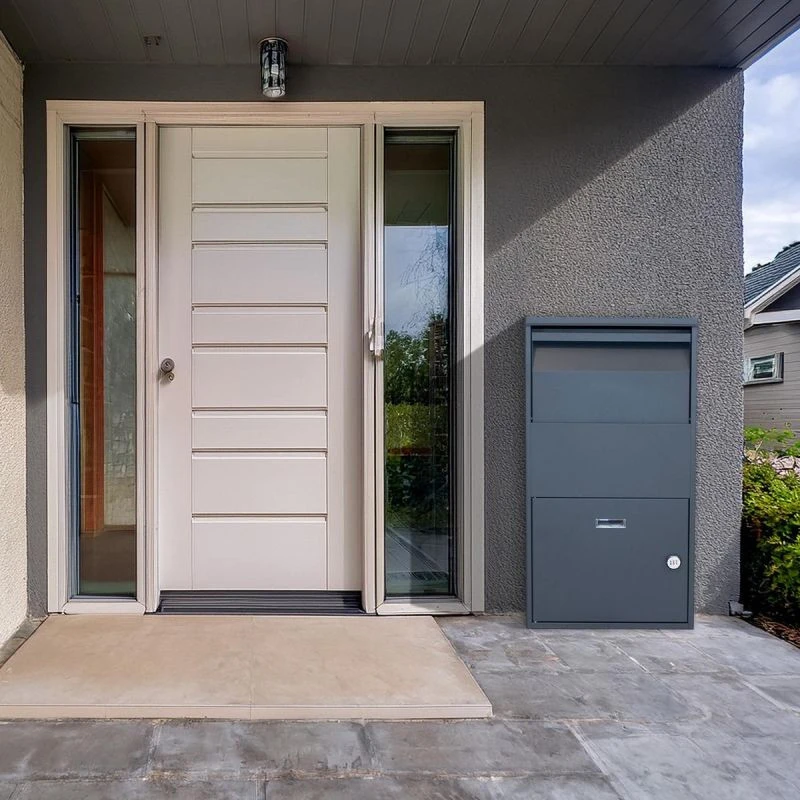 Dzięki wymiarom 23 x 41 x 75 cm skrzynka zapewnia idealną równowagę między kompaktową formą a praktyczną pojemnością. Jest wystarczająco duża, aby pomieścić większość standardowych przesyłek kurierskich, w tym koperty A4, małe paczki, a jednocześnie nie dominuje przestrzeni przed domem.