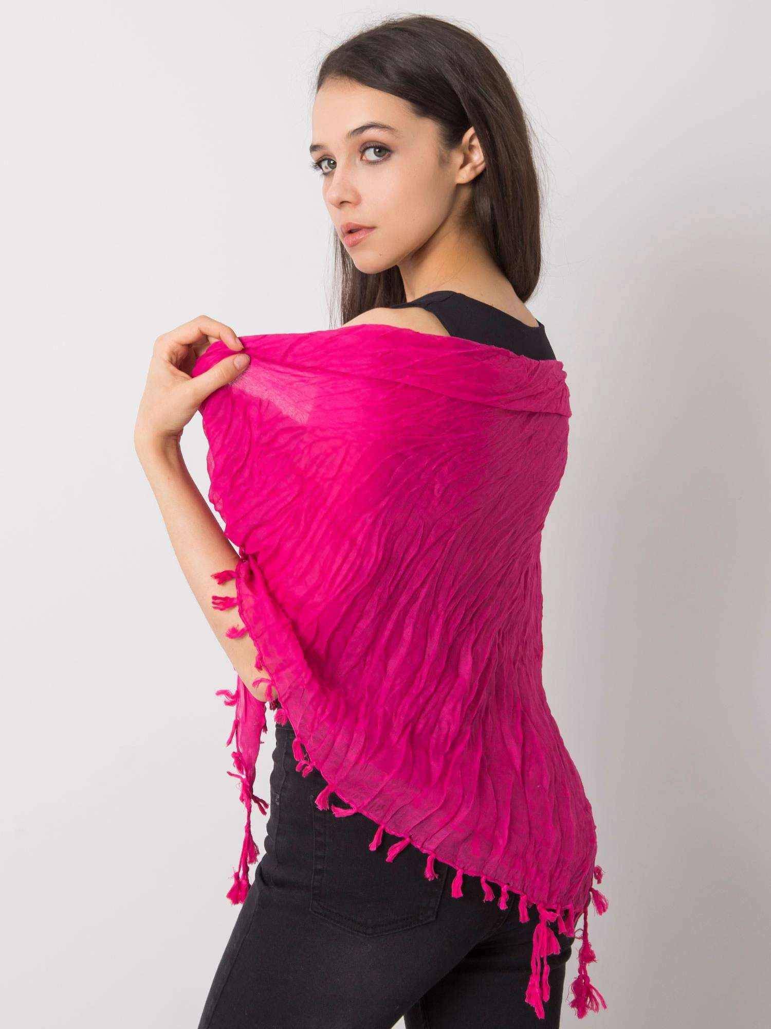 Fuchsiová dámská šála se střapci.