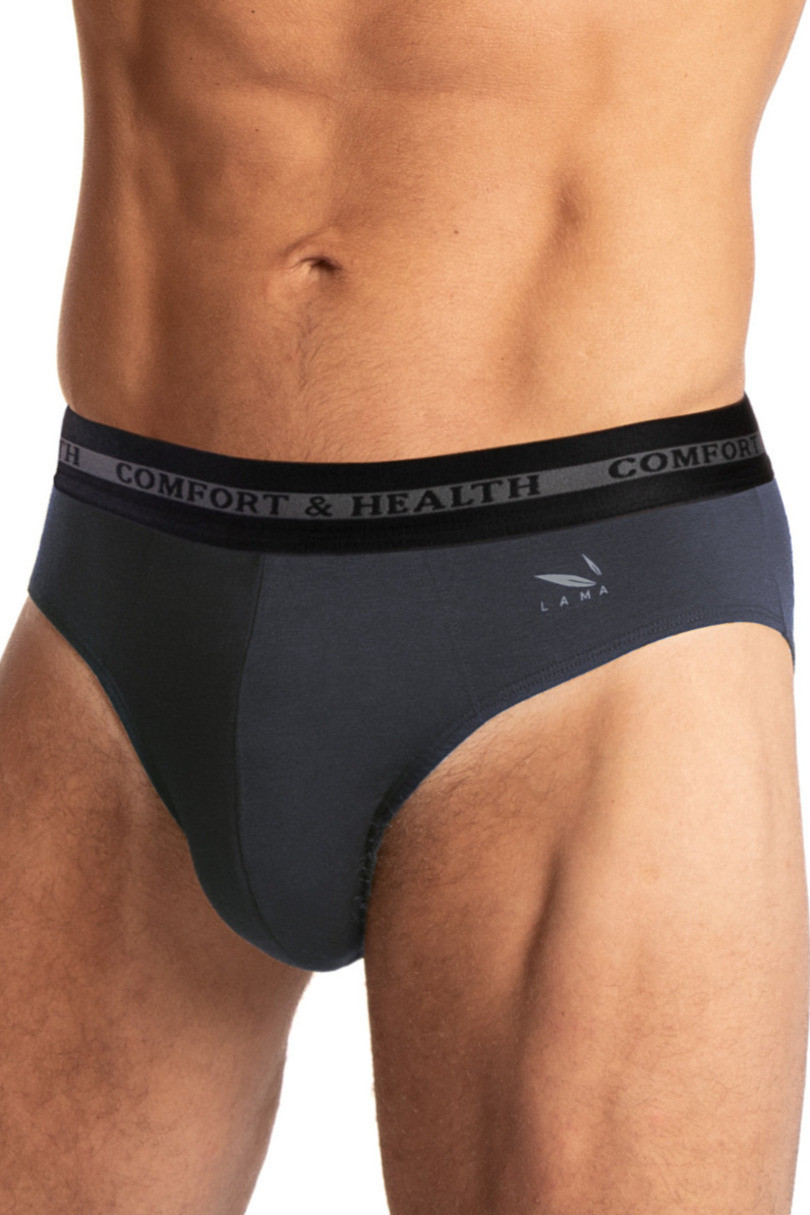 Dzięki dopasowanemu krojowi slipy idealnie przylegają do ciała, zapewniając odpowiednie wsparcie i swobodę ruchów. Elastyczna guma w pasie z napisem Comfort & Health gwarantuje dobre dopasowanie bez ucisku, a subtelne logo LAMA podkreśla markowy charakter bielizny.