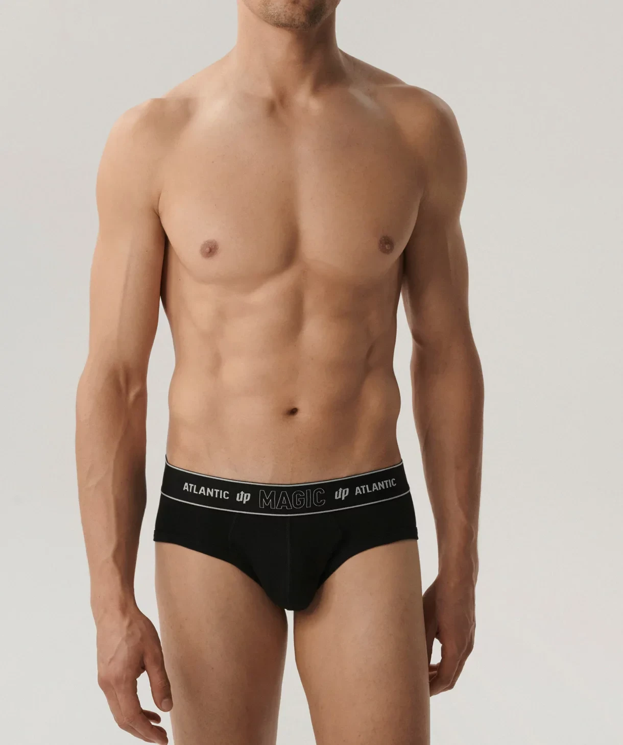 Poznaj slipy męskie Magic Pocket w nowym wydaniu. Majtki o sportowym charakterze odznaczają się średniej szerokości bokami oraz niską talią, wykończoną szeroką gumą zewnętrzną z napisami Atlantic Up MAGIC. Slipy mają profilujące szwy i koszyk, gdzie mieści się Magic Pocket (magiczna kieszonka), która odpowiada za uniesienie i powiększenie przyrodzenia.