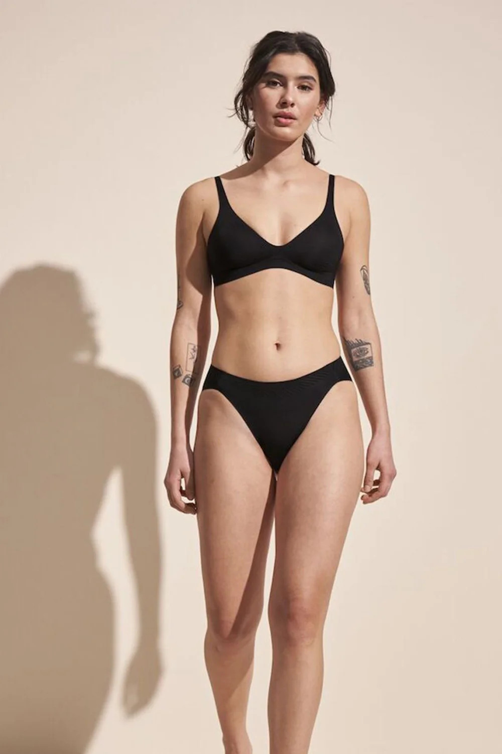 Podprsenka od Sloggi. Model 10207489 Přizpůsobení těla. Výrobek má nastavitelné popruhy bez možnosti odepnutí. Kovové háčky na popruh. Podprsenka se zapínáním na háčky a oči. Upevňovací bod: vzadu. Výrobek je vyroben ze 73 % z polyamidu a 27 % z elastanu. Výrobek pro ženy.