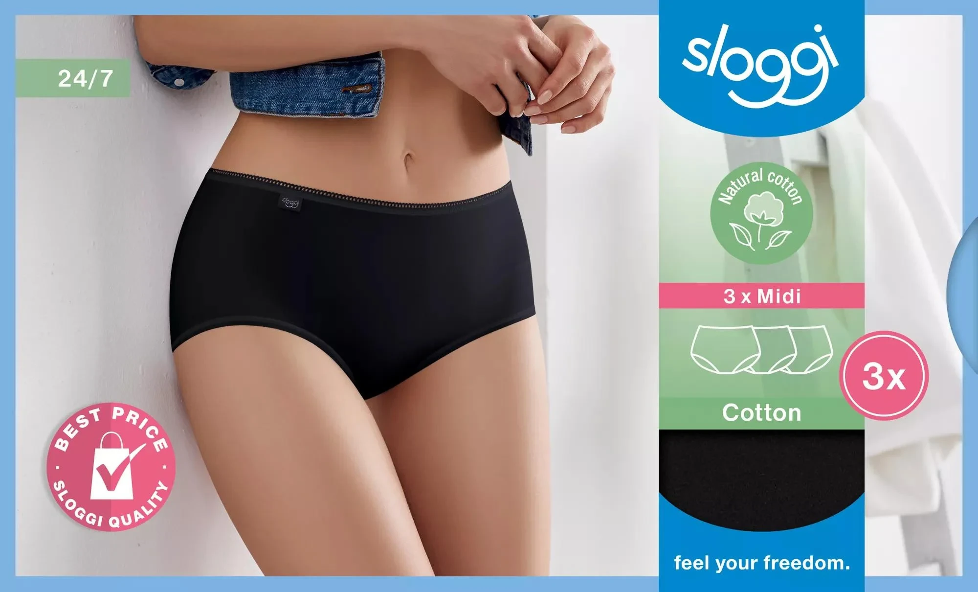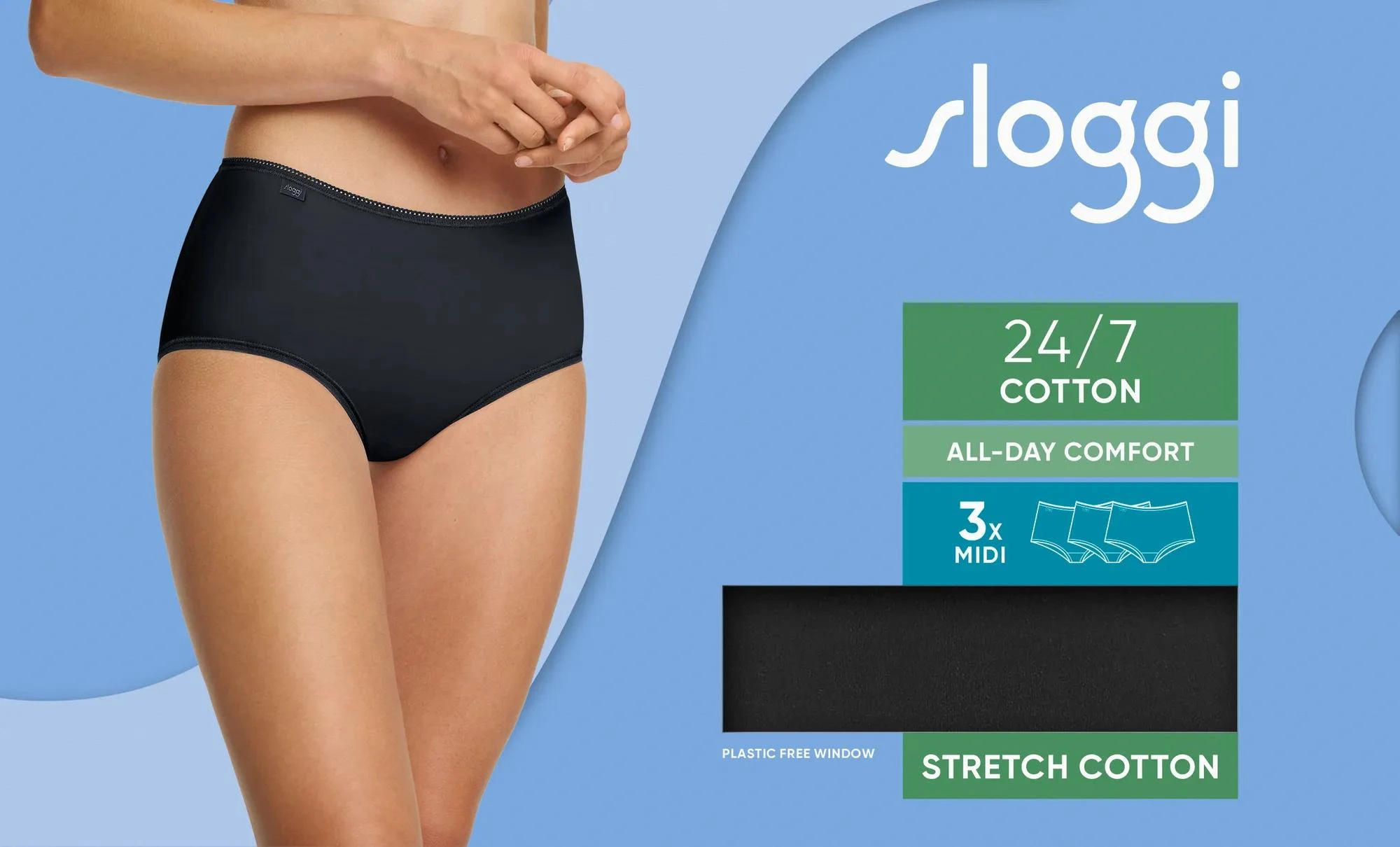 sloggi 24/7 Cotton Midi C3P - BLACK - SLOGGI BLACK - SLOGGI