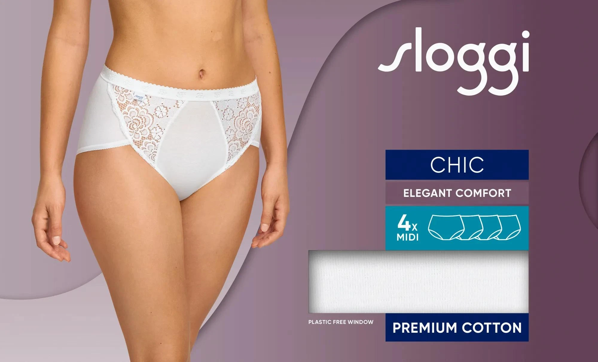 sloggi Chic Midi 4P - WHITE - SLOGGI WHITE - SLOGGI