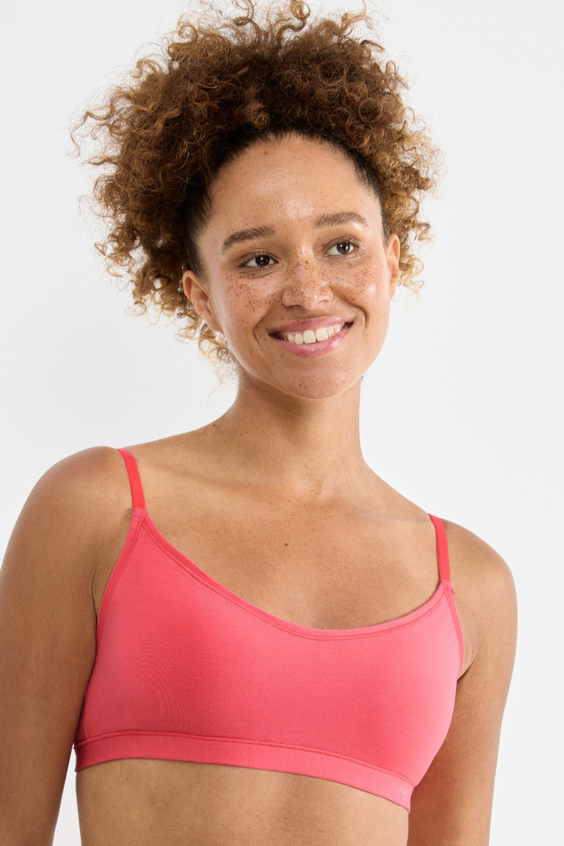 Biustonosz z serii FREE Evolve, bez fiszbin i szwów. Wykonany z niezwykle miękkiego i elastycznego materiału LENZING™ Modal, doskonale dopasowuje się do sylwetki i ma nowoczesny, modny fason. Rozciągliwe miseczki gwarantują dodatkowe podtrzymanie.