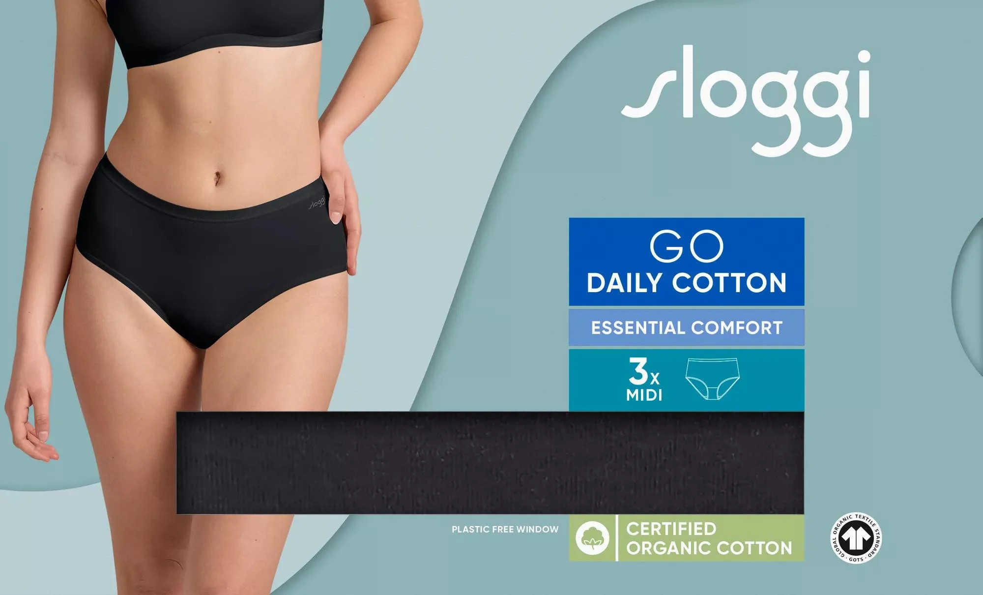 sloggi GO Daily Cotton Midi 3P - BLACK - SLOGGI BLACK - SLOGGI