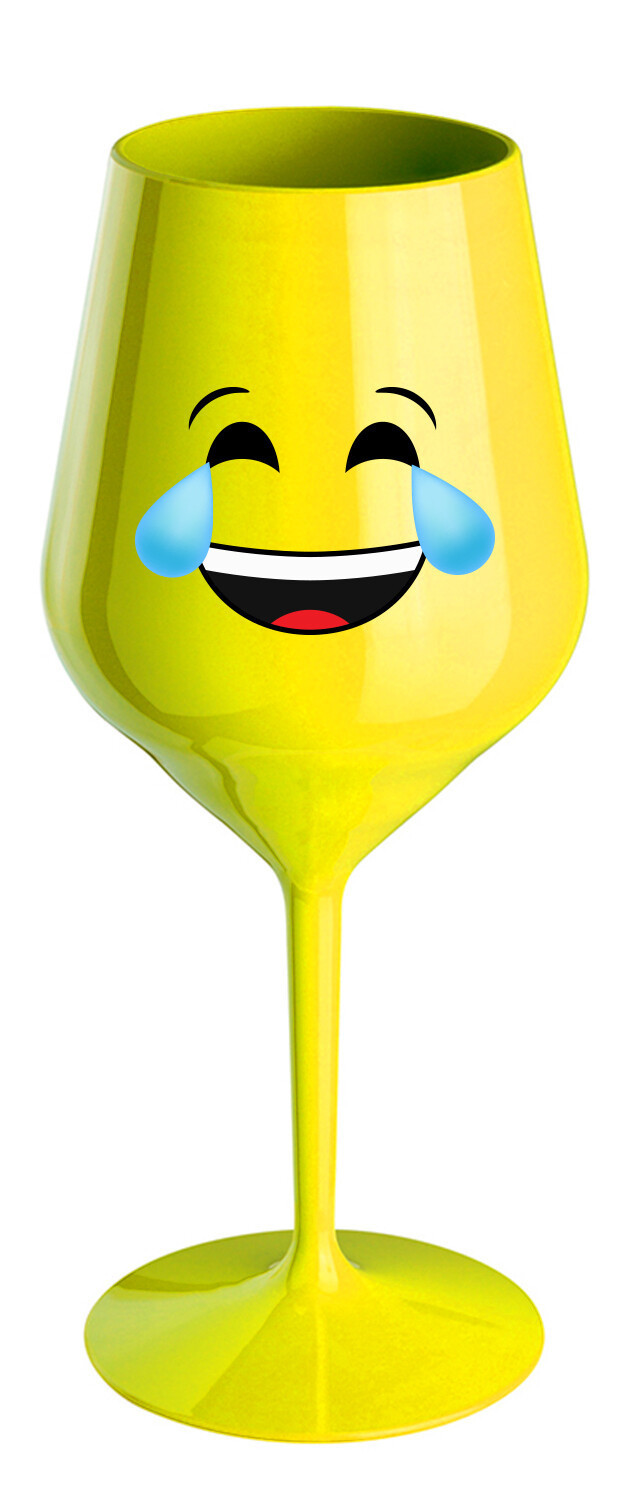 SMAJLÍK PLAČÍCÍ SMÍCHY - žlutá nerozbitná sklenice na víno 470 ml