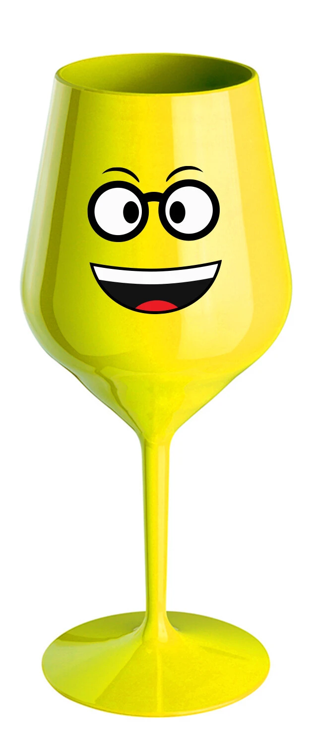 SMAJLÍK S BRÝLEMI - žlutá nerozbitná sklenice na víno 470 ml