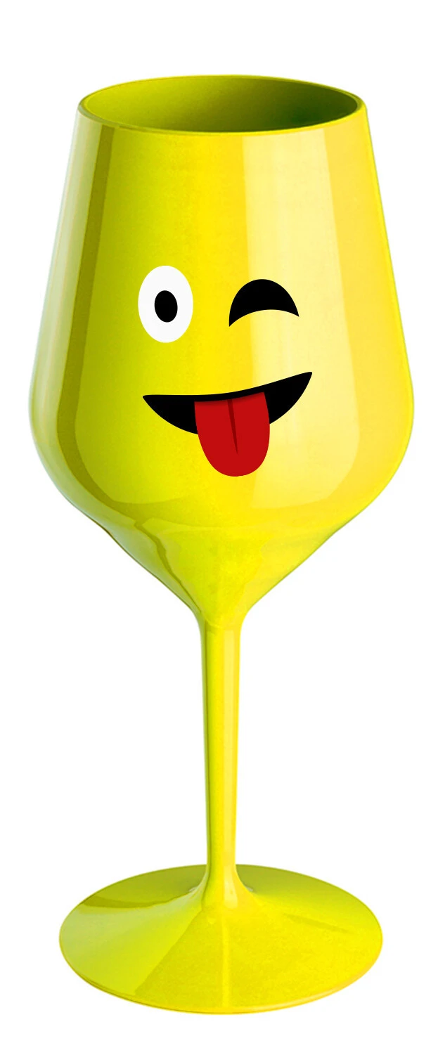SMAJLÍK VYPLAZUJÍCÍ JAZYK - žlutá nerozbitná sklenice na víno 470 ml