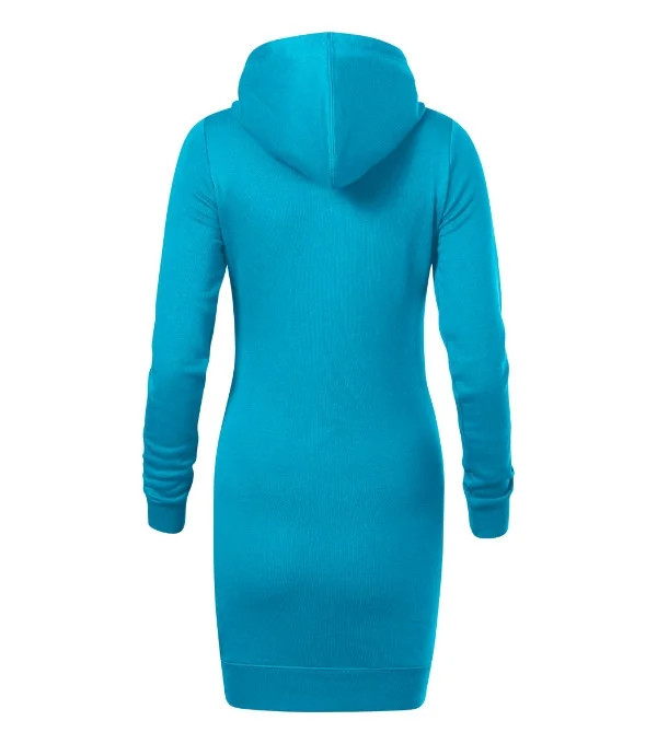 lehce vypasovaný střih s bočními švy délka nad kolena kapuce s podšívkou, na stažení šňůrkou vnitřní část průkrčníku začištěna páskou v barvě 94 dolní lem a manžety rukávů z žebrového úpletu 1:1 s 5 % elastanu nakládaná kapsa ve stylu klokanky vnitřní strana nepočesaná