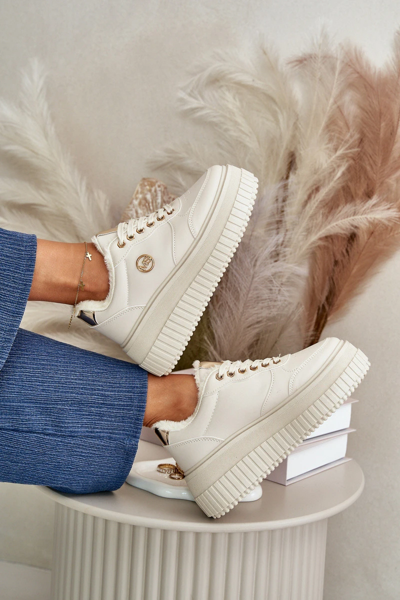Sneakersy Dámské Sportovní Boty Zateplené Na Masivní Podešvi Béžové Ardiela