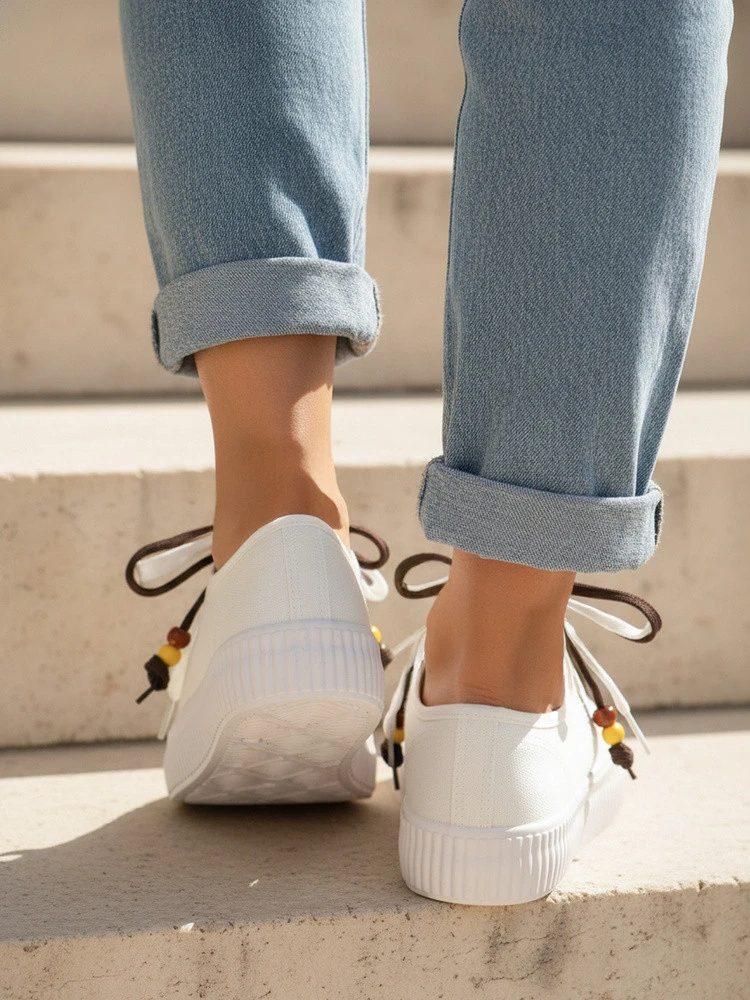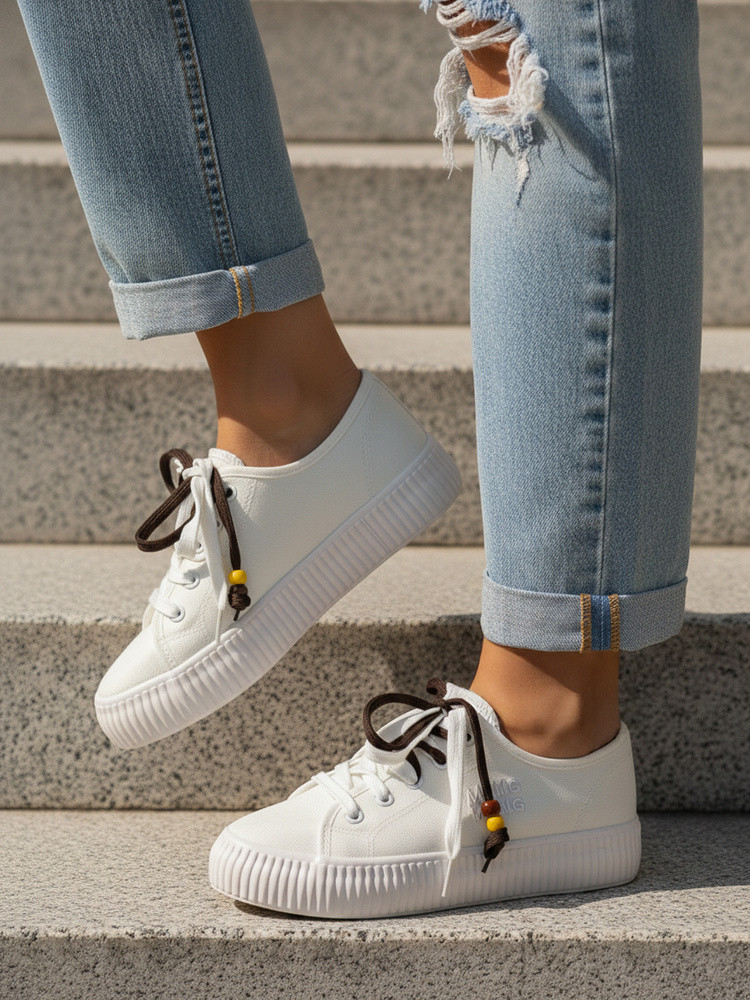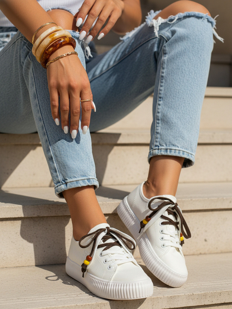 Sneakersy damskie o lekkiej, codziennej konstrukcji sprawdzą się w miejskich stylizacjach. Niski profil oraz elastyczna podeszwa zapewniają wygodę podczas chodzenia. Klasyczne sznurowanie umożliwia dobre dopasowanie do stopy. Subtelne detale przy sznurówkach nadają modelowi nowoczesnego charakteru.