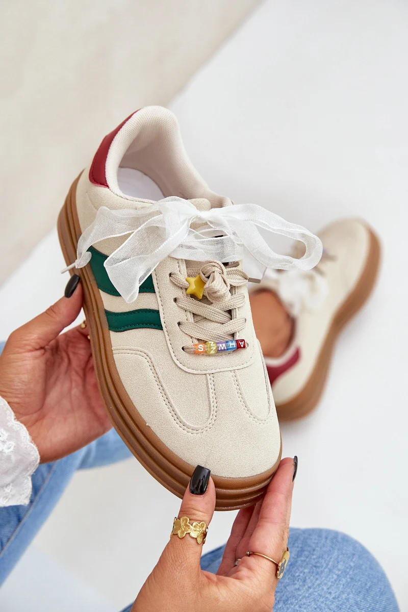Sneakersy Damskie Z Przypinkami Beżowe Jariana