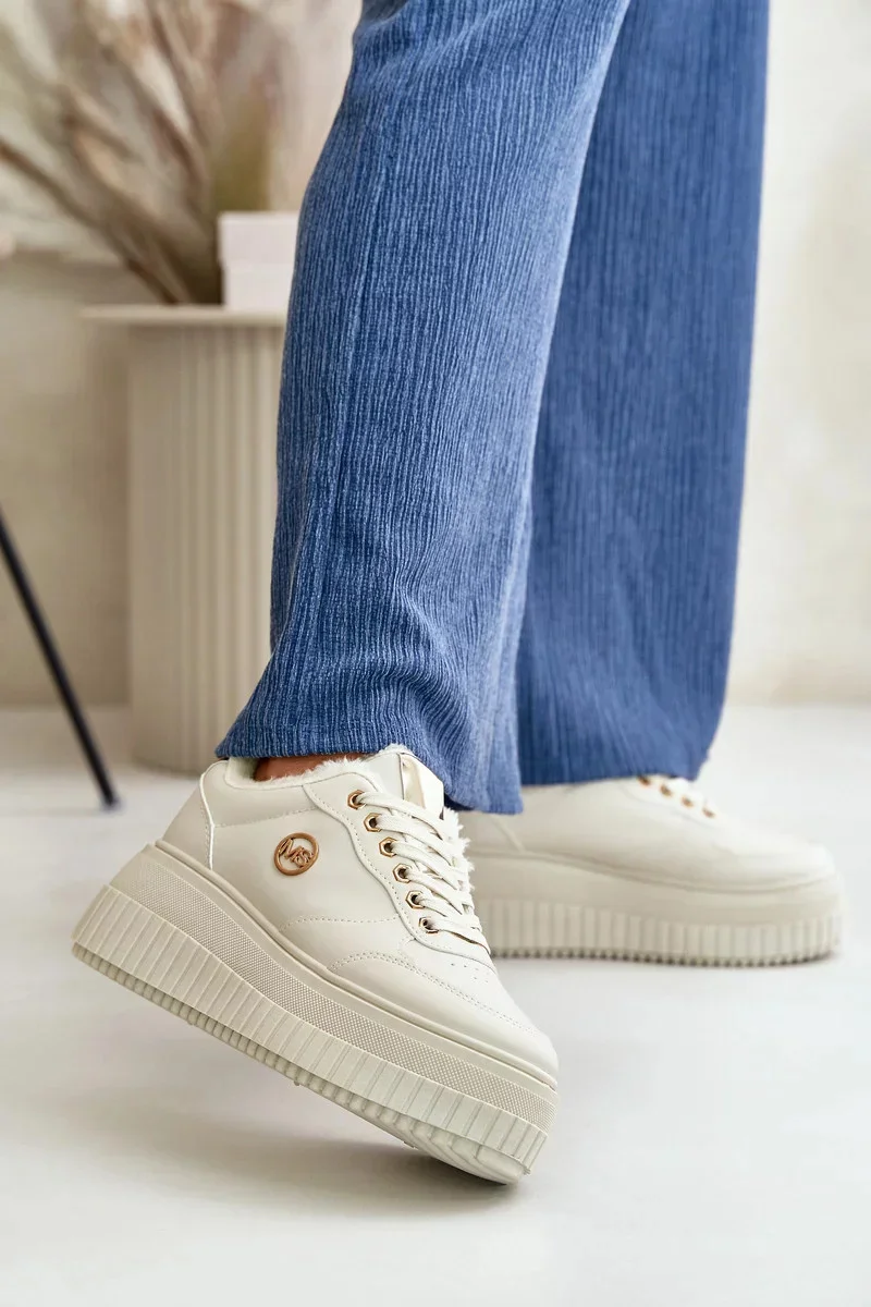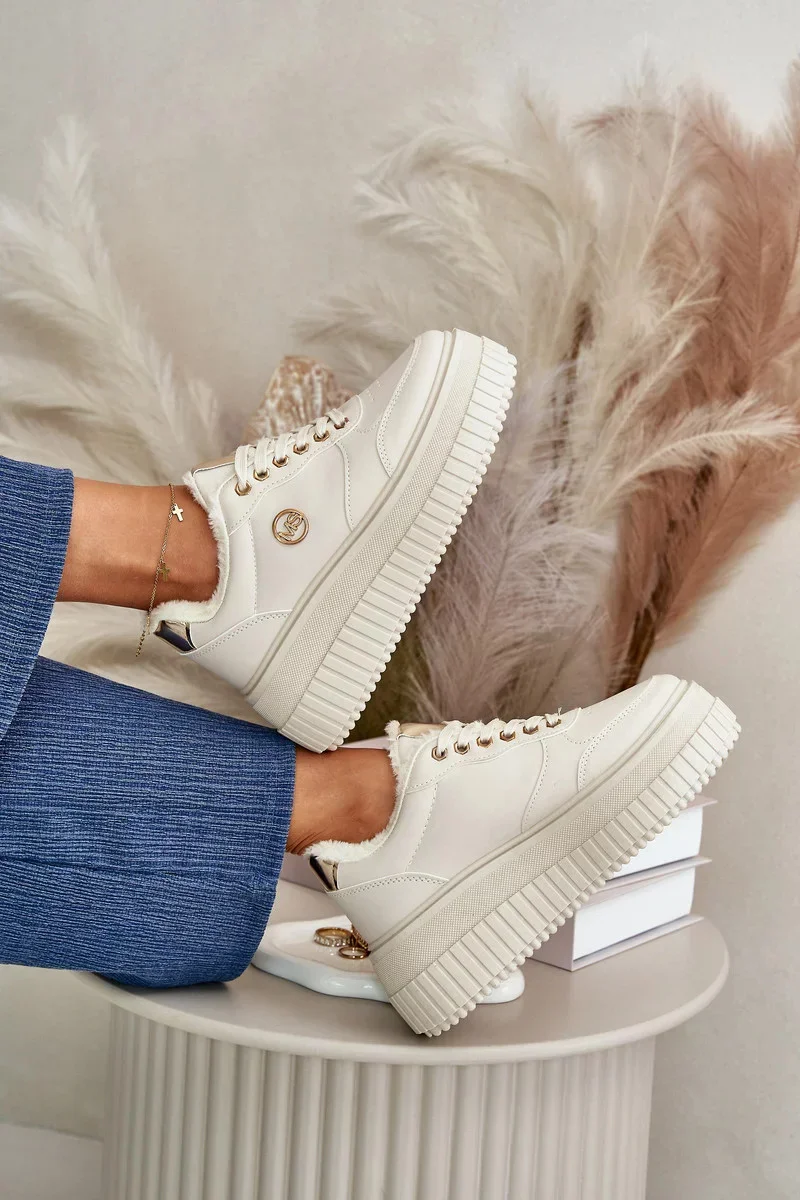 Sneakersy Sportovní Boty Dámské Zateplené Na Masivní Podešvi Béžové Ardiela