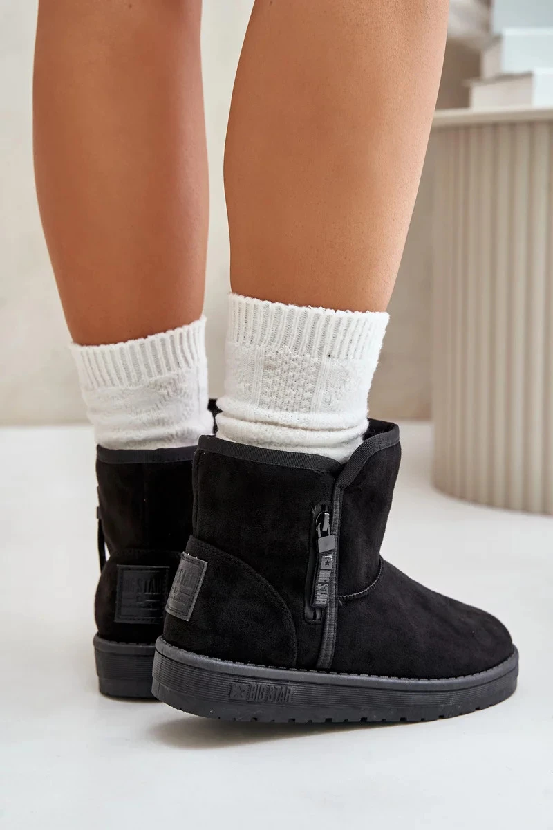 Dámské sněhule Big Star vyrobené z eko semiše jsou ideálním řešením na zimní dny. Vnitřek bot je zateplený měkkým kožíškem, který zajišťuje teplo a pohodlí i v nejchladnějších dnech. Svršek je zdoben ozdobným zipem, což modelu dodává originalitu a módní charakter. Při výběru velikosti se prosím řiďte tabulkou velikostí.