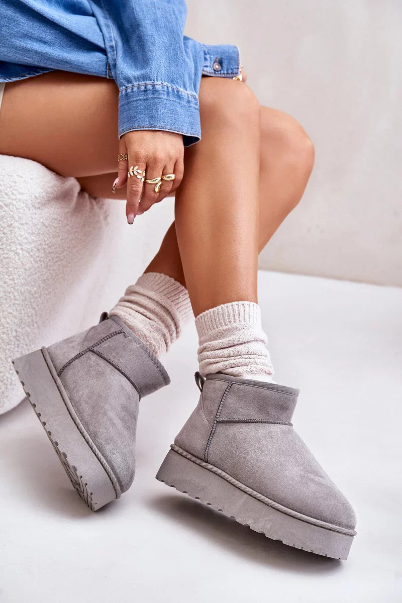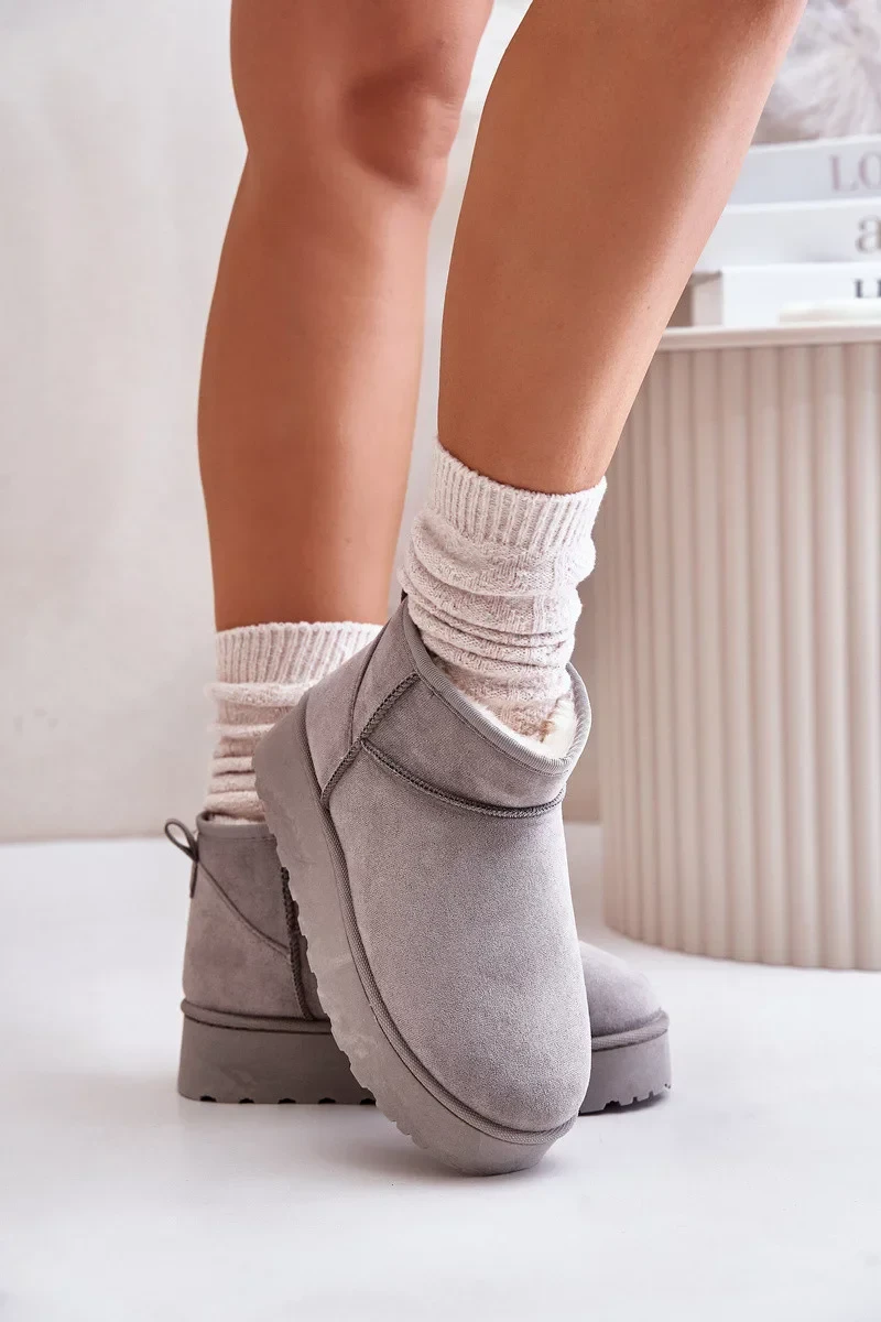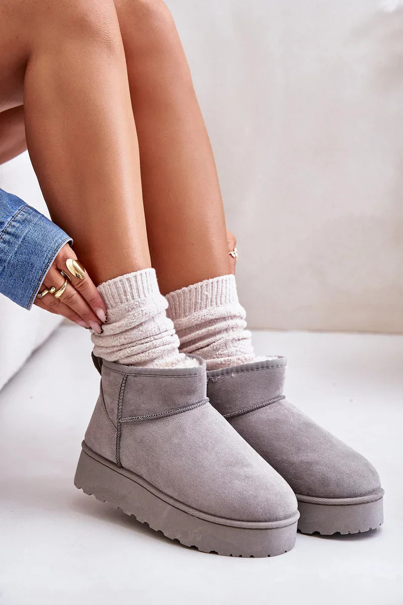 Sněhule Dámské Na Platformě Zateplené Kožíškem Šedé Xamella