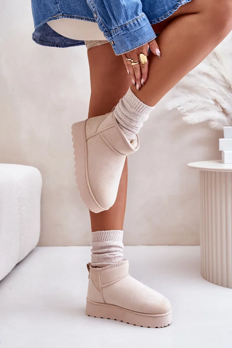 Sněhule Dámské Na Platformě Zateplené Kožíškem Světle Béžové Xamella