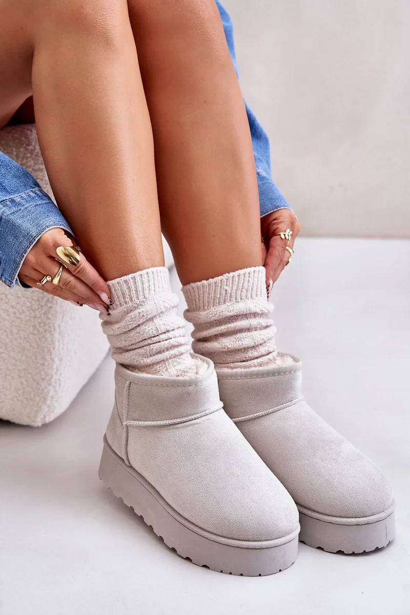 Sněhule Dámské Na Platformě Zateplené Kožíškem Světle Šedé Xamella