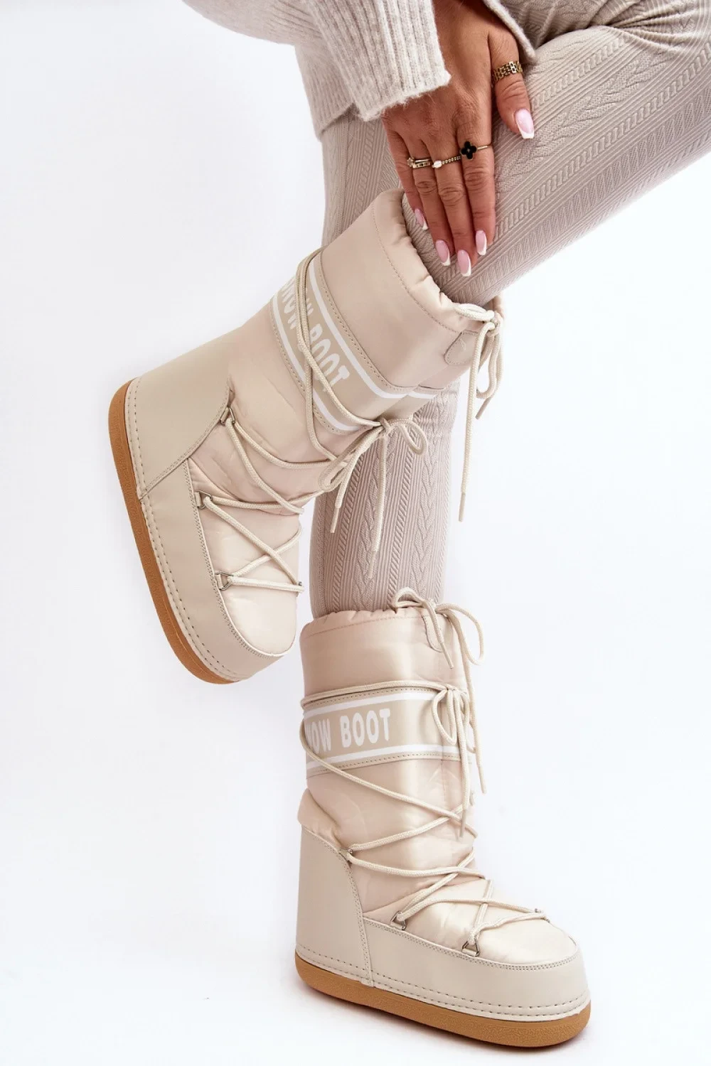 Tyto dámské sněhule, které jsou mimořádně teplé a pohodlné, byly vyrobeny z materiálů odolných proti chladu a větru. Svršek s příměsí ekokůže a ozdobným nápisem obohatí váš podzimně-zimní styling. Sněhule jsou nazouvací a mají přídavné šněrování v přední a horní části svršku. Tento model je usazen na masivní platformě. Uvnitř mají zateplení v podobě pěny a deky na boty. Tyto sněhule jsou ideálním modelem pro chladnější dny!