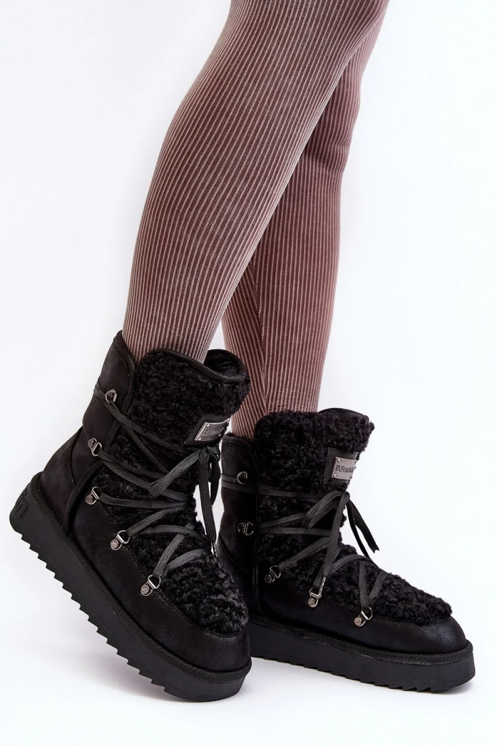 Dámské sněhule z vysoce kvalitní nepromokavé tkaniny z mikrovlákna. Osazené na silné protiskluzové podrážce. Vnitřní a přední strana podšitá syntetickou kožešinou. Tento model je určen pro nejchladnější dny. Sněhule jsou nazouvací s přídavným vázáním. Veganské provedení.