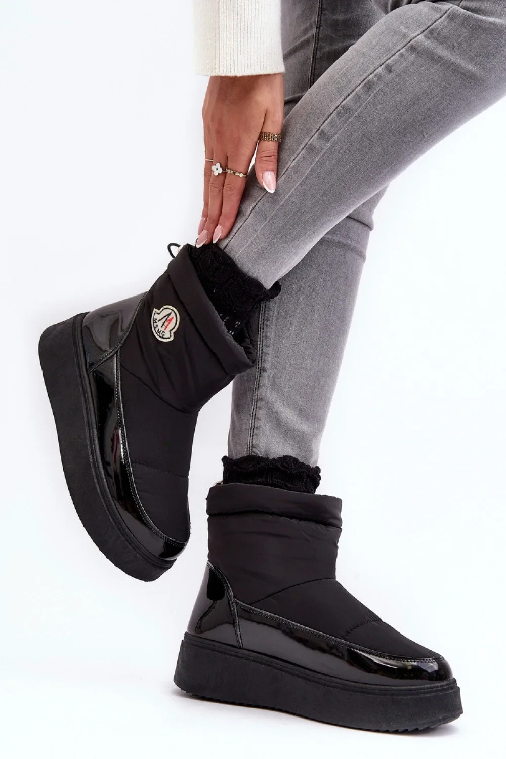 Klasické dámské sněhule vyrobené z kombinace textilu a ekologické kůže. Stojí na platformě. Vnitřek podšitý silnou kožešinou. Nazouvací model se svrškem v délce nad kotníky. Lemování v horní části svršku. Ideální pro ty, kteří ocení pohodlí a teplo v chladných dnech! Ty prostě musíte mít!