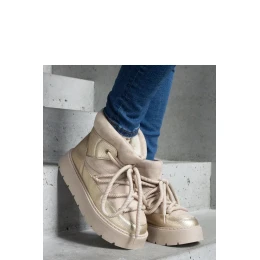 Bežové sněhule na platformě Sapphi jsou ideální obuv pro každou ženu, která si cení jak styl, tak pohodlí. Tyto teplé zimní boty mají vyhřívané kožešinové podšívky, které zajistí pohodlí i v nejchladnějších dnech. Vyrobené z kvalitní ekologické kůže a gumové podrážky zaručují trvanlivost a stabilitu. Šněrovací uzavírání umožňuje dokonale přizpůsobit boty k noze, a jejich trendy design z nich udělá skvělé doplnění každé zimní stylizace. Ať vaše nohy září v těchto módních sněhulích na platformě!