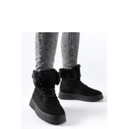 Černé sněhule na platformě Oliverio jsou ideální obuv na chladné dny. Díky zateplení udržují nohu v příjemné teple a jejich moderní design je udělá skvělým doplňkem zimního outfitu. Kulatý špičatý nos dodává botám eleganci a ekologická kůže zaručuje trvanlivost a pohodlí při nošení. Gumová podrážka zajišťuje pohodlí a stabilitu při chůzi po kluzkém povrchu. Tyto nazouváky nejsou jen funkční, ale také stylové, což je dělá oblíbenými mezi módními nadšenci. Bez ohledu na příležitost jsou tyto boty skvělou volbou na zimní dny. materiál Eko kůže zam