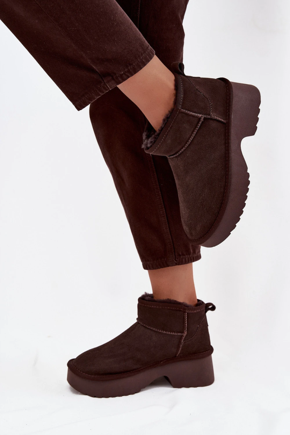Sněhule pro ženy vyrobené z přírodního semiše jsou stylovým návrhem na zimní dny. Umístěné na platformě poskytují stabilitu a pohodlí při chůzi, zároveň účinně izolují před chladem. Vnitřek bot byl vybaven kožešinou, která zaručuje teplo a pohodlí v mrazivých dnech. Moderní střih zajišťuje, že sněhule skvěle zapadají do aktuálních trendů. Ideální volba pro ženy, které ocení styl a pohodlí ve zimních outfitech.