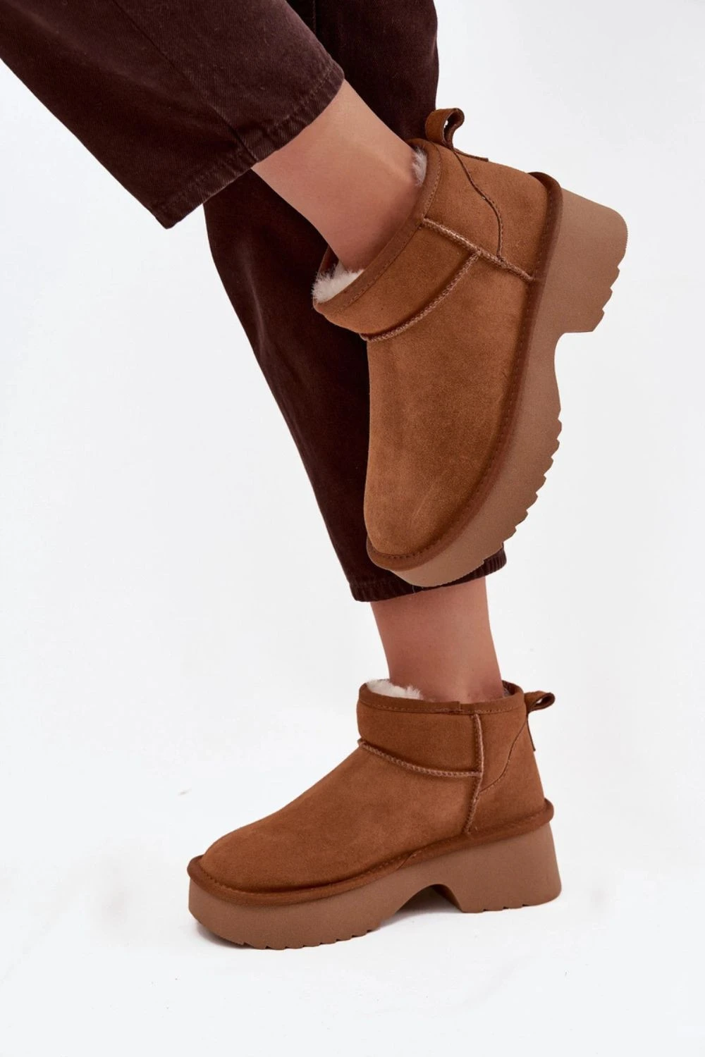 Sněhule dámské vyrobené z přírodního semiše jsou stylovým návrhem na zimní dny. Umístěné na platformě poskytují stabilitu a pohodlí při chůzi, zároveň účinně izolují od chladu. Vnitřek bot byl vybaven kožichem, který zaručuje teplotu a pohodlí v mrazivých dnech. Moderní střih z nich činí skvělý doplněk k aktuálním trendům. Ideální volba pro ženy, které ocení styl a pohodlí ve zimních outfitech.