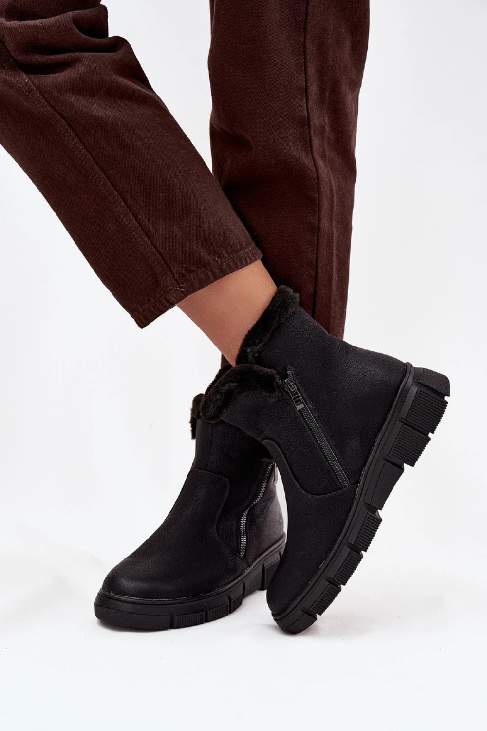 Sněhule pro ženy vyrobené z ekologické kůže jsou ideální volbou na zimní dny, spojující styl s funkcionalitou. Model na platformě poskytuje stabilitu a pohodlí při chůzi a zároveň účinně izoluje od chladu. Boty mají dva zipy po stranách, které usnadňují obouvání a svlékání. Vnitřek a horní část boty jsou vyztuženy měkkým kožichem, který zaručuje teplotu a útulný komfort i v mrazivých dnech. Podrážka z gumového materiálu zajišťuje dobrý úchop na různých površích. Jsou to stylové a praktické sněhule, které se skvěle osvědčí během zimních procházek a každodenního nošení.