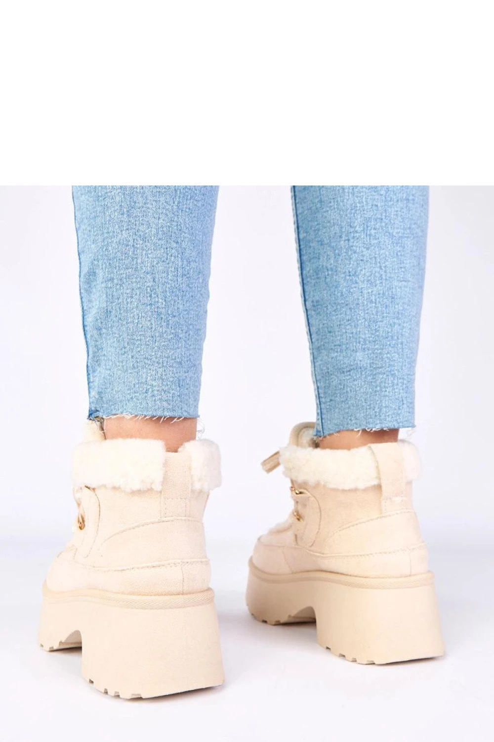Sněhule s kožešinou, uvázané na vysoké platformě, jsou ideální obuví na zimní dny, kombinující styl, pohodlí a teplo. Vyrobené z vysoké kvality semišové ekologické kůže, vypadají elegantně a moderně, zároveň jsou odolné proti každodennímu používání. Měkká kožešina přidává útulný charakter a poskytuje dodatečnou ochranu před chladem. Kulatá špička zajistí pohodlné nošení a uvázání umožní perfektně přizpůsobit boty k noze, zvyšující stabilitu během chůze. Vysoký svršek o výšce 10 cm a platforma o výšce 6,5 cm chrání nohu a kotník a zároveň dodávají postavě lehkost a decentně ji prodlužují. Vložka z měkké látky zvyšuje pohodlí užívání, díky čemuž se sněhule osvědčí jak při dlouhých procházkách, tak i každodenních výstupech v zimní atmosféře, kombinující funkčnost s módním vzhledem.