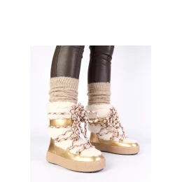 Sněhule s kožešinou, šněrovací, jsou ideální obuví na zimní dny, spojující teplotu, pohodlí a stylový vzhled. Vyrobené z kombinace syntetického kožešinu a ekologické kůže působí efektně a zároveň jsou praktické při každodenním nošení. Měkká kožešina nejenže jim dodává půvab, ale také zajišťuje skvělou ochranu před chladem. Kulatý nos garantuje pohodlné nošení, a šněrování umožňuje ideální přizpůsobení sněhulek k noze, zvyšuje stabilitu při chůzi. Svršek sahající za kotník (19 cm) chrání před chladem a poskytuje dodatečnou oporu, zatímco platforma ve výšce 4 cm přidává pár centimetrů, zároveň tlumí kroky. Vložka z měkké látky zvyšuje pohodlí nošení, díky čemuž se sněhule skvěle hodí na zimní procházky nebo každodenní vycházky. Jedná se o teplou, moderní a funkční obuv ideální na mrazivé dny.