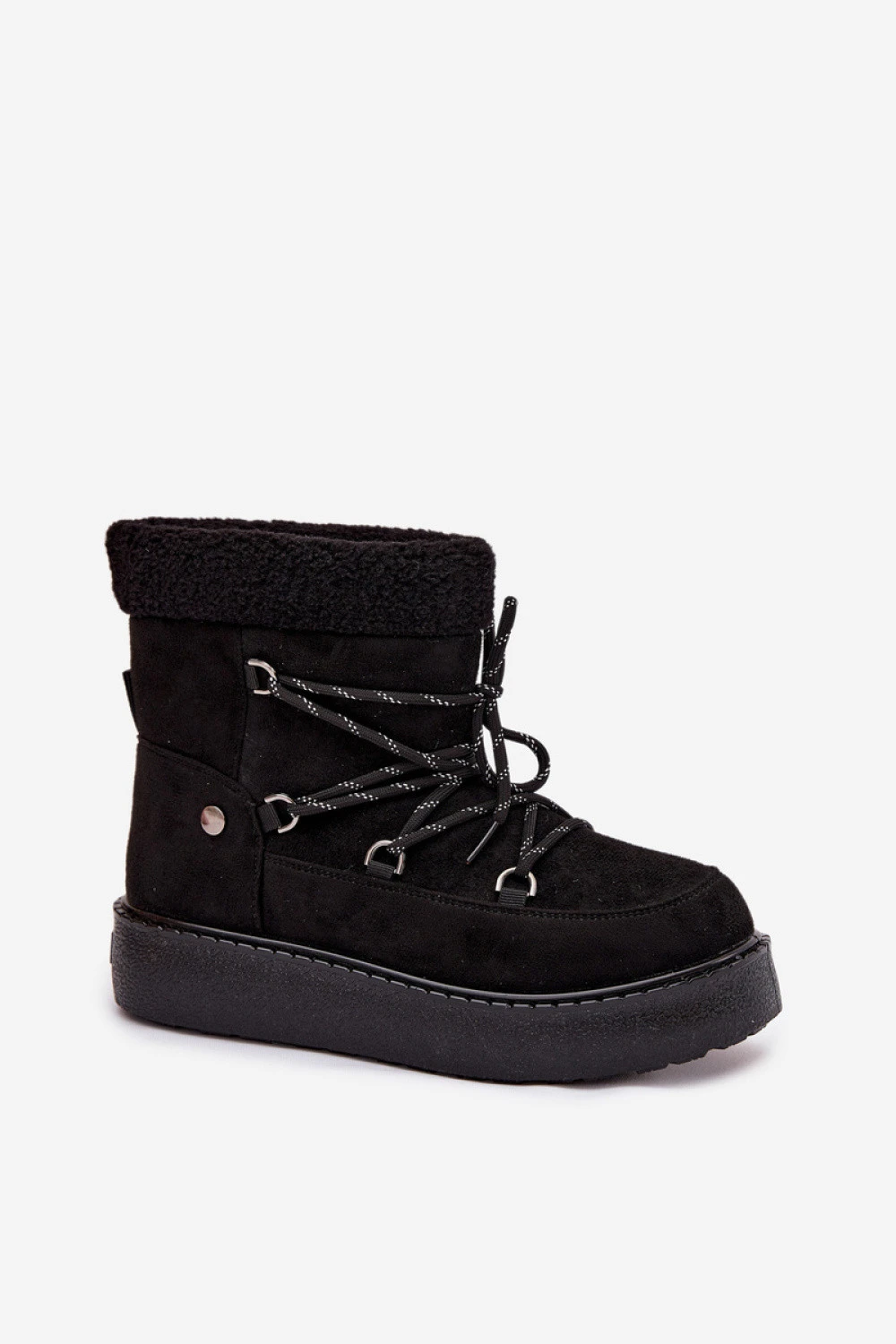 Zimní dámské sněhule vyrobené z ekokožešiny jsou praktickou a stylovou volbou na zimní dny. Umístěné na pevné platformě z gumového materiálu poskytují dobrou izolaci od studeného povrchu a stabilitu během chůze. Model se nasazuje, a dodatečné šněrování umožňuje lepší přizpůsobení a přidává módní charakter. Vystřižený interiér zaručuje teplotu a pohodlí i při nízkých teplotách. Ideální pro každodenní zimní stylizace.