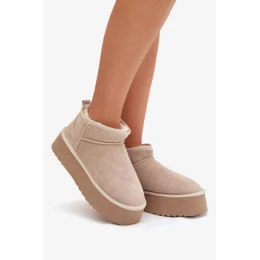 Sněžné boty pro ženy vyrobené z přírodního semiše jsou solidní a stylovou volbou na zimní dny. Umístěné na pohodlné platformě zaručují dobrou izolaci od studeného povrchu a pohodlí během chůze. Vnitřek vyztužený tlustým, měkkým kožíškem zajistí výjimečné teplo, díky čemuž se boty skvěle osvědčí i při nízkých teplotách. Jedná se o praktický a módní model ideální pro každodenní zimní stylizace.