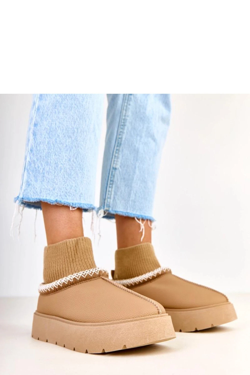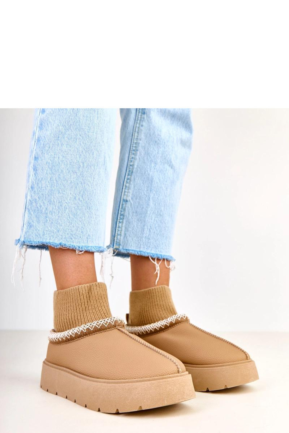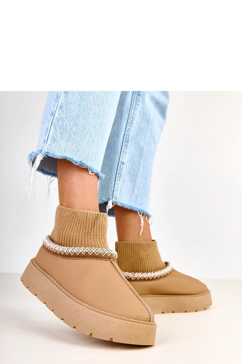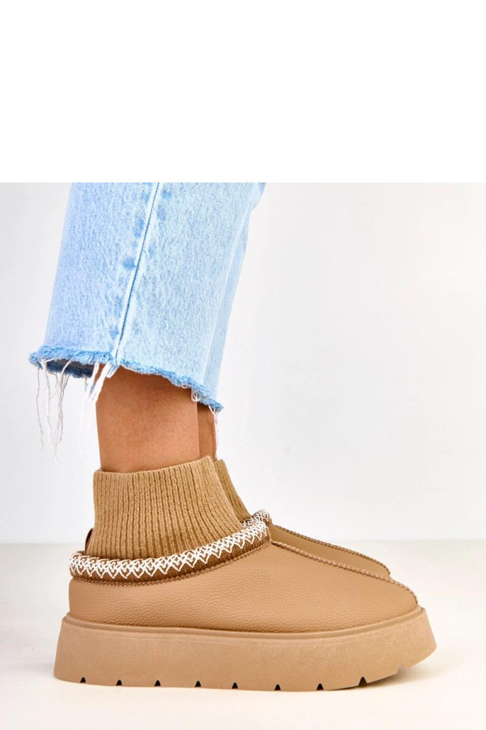 Hnědé sněžné boty s ponožkovým svrškem Melary jsou ideální volbou pro ženy, které ocení spojení pohodlí, funkčnosti a módního vzhledu v zimních dnech. Tyto stylové dámské sněžné boty byly navrženy tak, aby poskytovaly maximální pohodlí během mrazivého počasí a zároveň skvěle doplňovaly každodenní outfit. Teplé vnitřní části, stabilní podrážka a ponožkový svršek se perfektně přizpůsobí noze, což zajišťuje, že boty budou skvělým doplňkem jak ve městě, tak během víkendových výletů. Model hnědých sněžných bot s ponožkovým svrškem Melary je vyroben z příjemných a snadno udržovatelných materiálů, díky čemuž si obuv zachovává atraktivní vzhled po mnoho sezón. Univerzální hnědá barva skvěle ladí se zimními kabáty, pepitovými bundami nebo péřovými vestami, vytvářejíc módní a souvislé sety. Elastický, měkký svršek ve formě ponožky se přizpůsobí lýtku, zajišťuje optimální udržení boty na noze a dodatečnou ochranu proti chladu. Tyto dámské sněžné boty mají tlustou, protiskluzovou podrážku, která zvyšuje stabilitu na kluzkých površích a umožňuje se cítit jistě i při procházce po zasněžených chodnících. Vnitřek boty je vybaven měkkým, izolačním materiálem, který pomáhá udržet tepelný komfort v nízkých teplotách. Díky tomu budou hnědé sněžné boty s ponožkovým svrškem Melary skvělou volbou na zimní procházky, cestu do práce nebo na školu. I když se jedná o nedefinovanou značku, pečlivé provedení a důraz na detaily zajišťují, že boty vypadají velmi elegantně a stylově. Jemné prošívání, přizpůsobená linie a měkce padnoucí svršek dávají obuvi moderní, ženský charakter. Tyto hnědé sněžné boty skvěle ladí jak s džíny, tak s vlněnými šaty nebo pletenými sukněmi, stávají se praktickou základnou mnoha zimních outfitů. Vyberte si dámské sněžné boty Melary a získejte pohodlí, stylový vzhled a všestranné použití. Jedná se o obuv, která se osvědčí během každodenních povinností, nákupů, procházek po městě nebo setkání s přáteli. Pokud hledáte pohodlné, teplé a stylové boty na zimu, hnědé sněžné