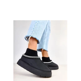 Černé sněhule s ponožkovým svrškem Melary jsou ideální volbou pro ženy, které ocení spojení pohodlí, tepla a módního vzhledu. Tyto dámské sněhule byly navrženy s ohledem na zimní procházky, každodenní výlety do města a výlety do hor. Díky ponožkovému svršku se boty perfektně přizpůsobí noze, poskytují pohodlí a dodatečnou ochranu před chladem. Model Melary je nabídkou pro ty, kteří hledají funkční obuv bez nutnosti přeplácení za známou značku, proto je v popisu uvedena neurčitá značka. Přesto se sněhule vyznačují pečlivým provedením a péčí o detaily, co se odráží na jejich trvanlivosti. Klasická černá barva zajišťuje, že boty skvěle ladí s většinou zimních outfitů, od péřových bund, přes vlněné kabáty, až po sportovní parky. Měkký ponožkový svršek těsně obepíná lýtko, co pomáhá udržet teplo a zabránit pronikání sněhu dovnitř boty. Současně představuje módní doplněk, který obuvi dodává originální vzhled. Díky tomu jsou černé sněhule s ponožkovým svrškem nejen praktické, ale také stylové. Vnitřek boty je vyroben z měkkého materiálu, který zajišťuje vysoký komfort nošení i během dlouhých procházek. Solidní podrážka sněhulí zaručuje dobrou přilnavost k povrchu, což je zvláště důležité na zledovatělých chodnících nebo zasněžených cestách. Tyto zimní dámské boty se skvěle osvědčí v obtížných povětrnostních podmínkách a zároveň zůstanou lehké a pohodlné. Sněhule Melary jsou nabídkou pro aktivní ženy, které nechtějí vzdát eleganci ani v mrazivých dnech. Pokud hledáte obuv na zimu, která spojí funkčnost, moderní design a atraktivní cenu, černé sněhule s ponožkovým svrškem Melary budou skvělou volbou. Jsou to dámské sněhule, které se osvědčí jak v každodenním životě, tak během víkendových výletů. Vyberte si model Melary a užívejte si tepla, pohodlí a stylového vzhledu po celou sezónu.