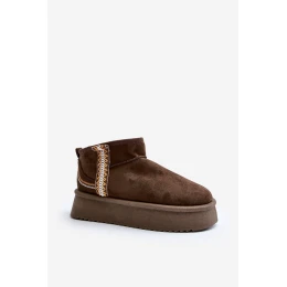 Sněhule na platformě jsou nejmodernější střih této sezóny! Tento model je vyroben z ekologického semiše. Silná podrážka z pryžového materiálu skvěle izoluje od chladného povrchu. Kotníková část je zdobená aztéckým vzorem. Uvnitř je vyloženo kožešinou. Určitě si je musíš pořídit! Při výběru velikosti se řiďte tabulkou velikostí.