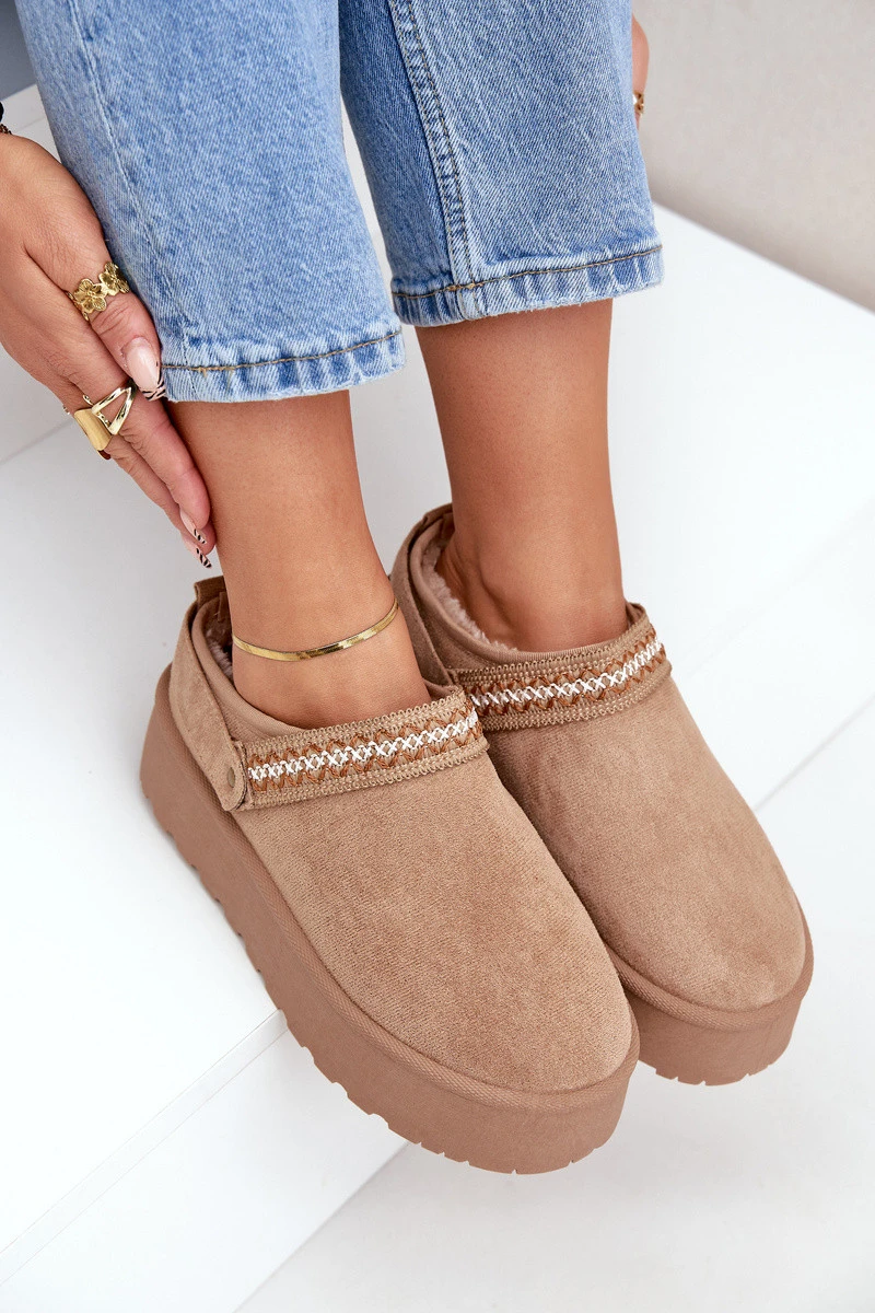 Stylové sněhule vyrobené z eko semiše jsou skvělou volbou na chladnější dny. Usazeny na platformě. Pásek vzadu na botě zvyšuje stabilitu chodidla. Zateplené měkkým, silným kožíškem. Vrchní část boty zdobí vyšívání, které jim dodává jedinečné kouzlo. Tento neuvěřitelně stylový model bys měla mít ve svém šatníku! Při výběru velikosti se řiďte tabulkou velikostí.