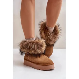 Dámské sněhule z přírodní semišové kůže. Stojí na platformě. Svršek zdobí huňatý kožíšek, který jim dodává jedinečný charakter. Tyto módní a stylové boty jsou ideální pro zimní dny, zaručují pohodlí a teplo.