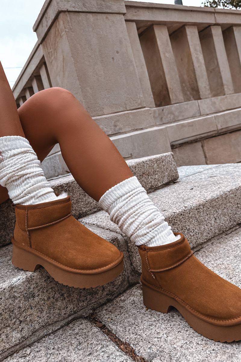 Dámské zimní boty vyrobené z přírodního semiše jsou stylovým návrhem na zimní dny. Umístěné na platformě, poskytují stabilitu a pohodlí při chůzi a zároveň účinně izolují od chladu. Vnitřek bot byl vyhřátý kožešinou, která zaručuje teplo a pohodlí v mrazivých dnech. Módní střih dělá z nich skvělý doplněk aktuálních trendů. Ideální volba pro ženy, které si cení stylu a pohodlí v zimních outfitech. Při výběru velikosti se řiďte tabulkou velikostí.