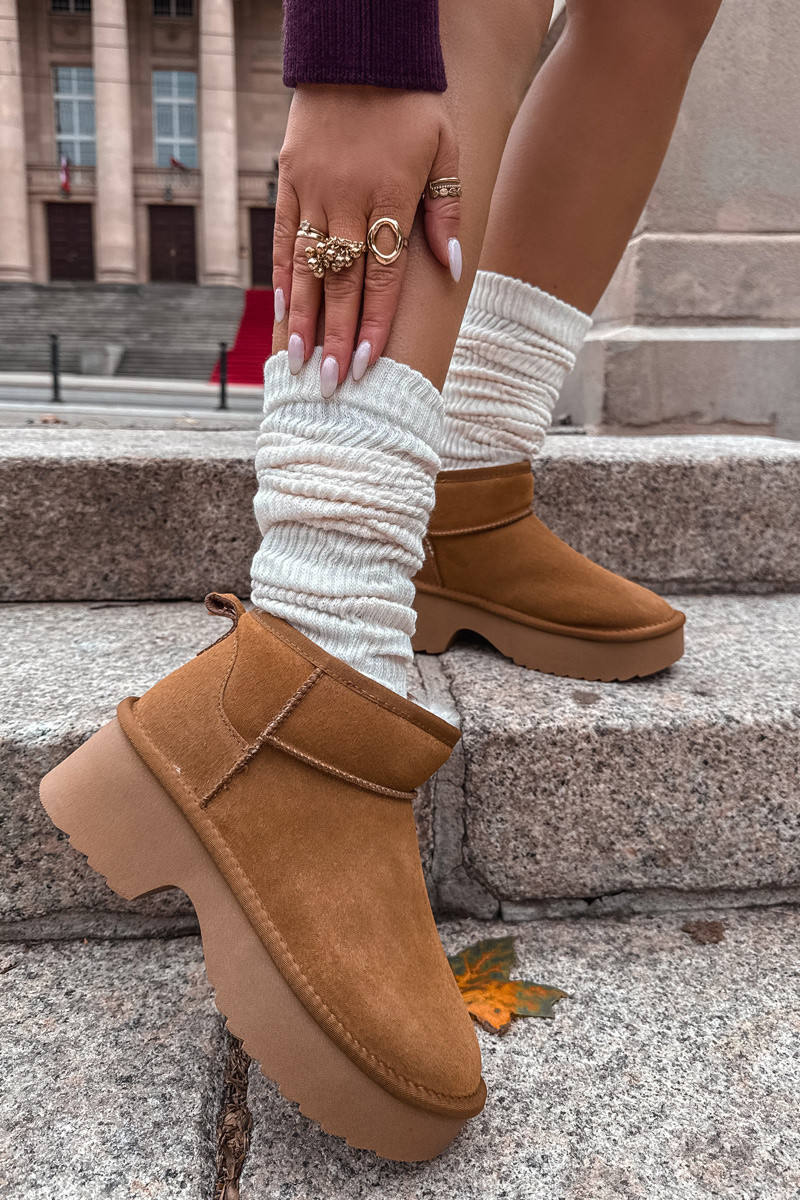 Sněhule z přírodního nubuku s teplou podšívkou Camel Milora