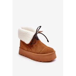 Dámské sněžné boty se skvěle osvědčí během mrazivých dnů. Vyrobeno z eko semiše. Upevněno na silné platformě. Zateplené kožešinou. Slip-on styl. Horní část je ozdobena tkanicí. Při výběru velikosti se řiďte tabulkou velikostí.