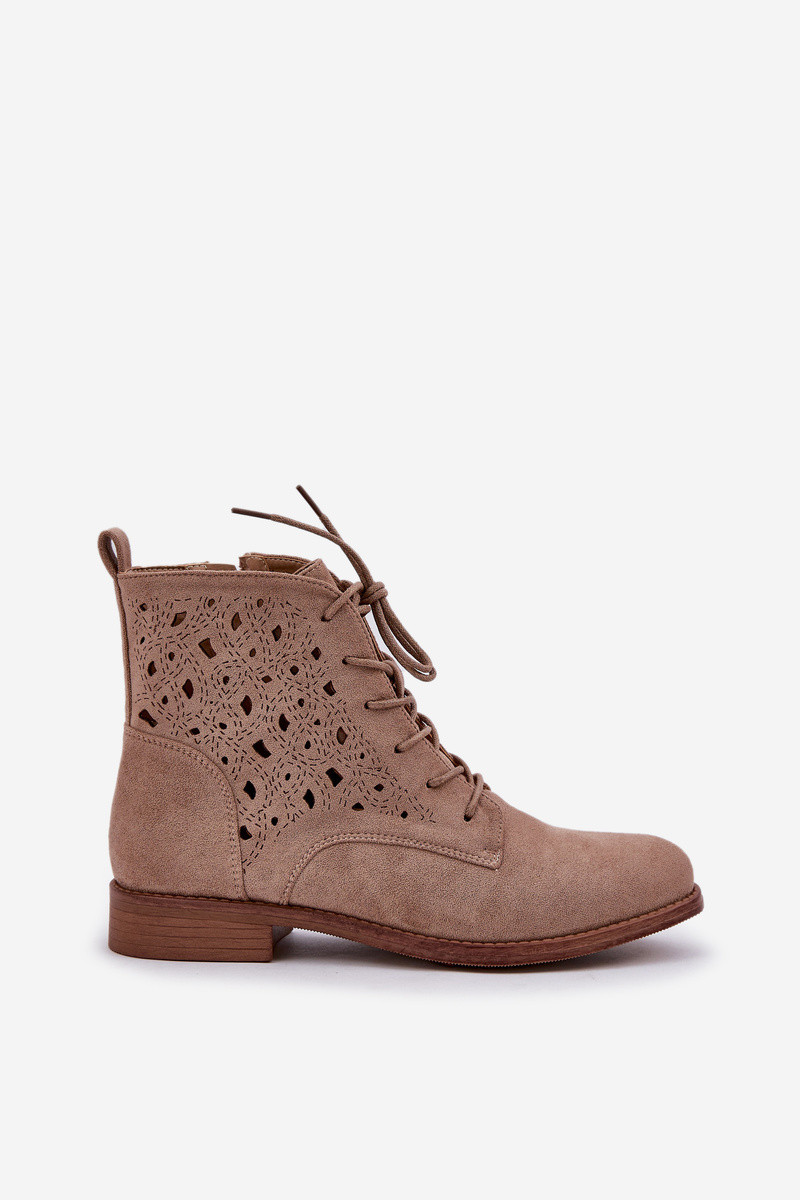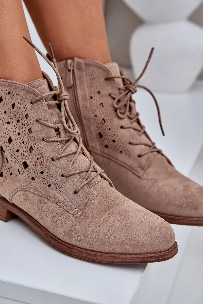 Šněrovací Boty S Děrovaným Vzorem S.Barski HY51-136 Béžové
