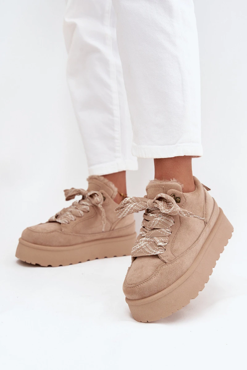 Šněrovací dámské sněhule na platformě zateplené kožíškem béžové model 21710258 - Boto