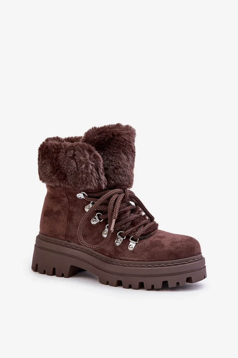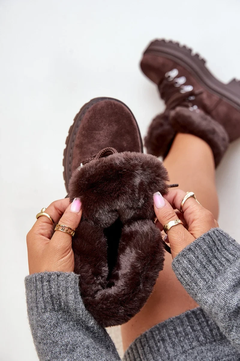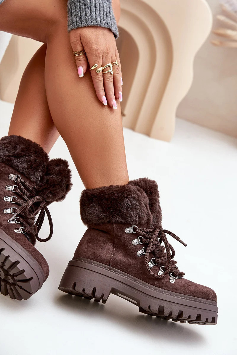 Šněrovací Dámské Trapery S Kožešinou Tmavě Hnědé Vaminia