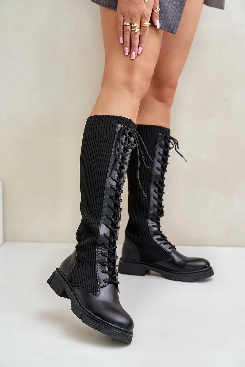 Šněrovací kozačky s elastickým svrškem černé model 20865204 - Kesi