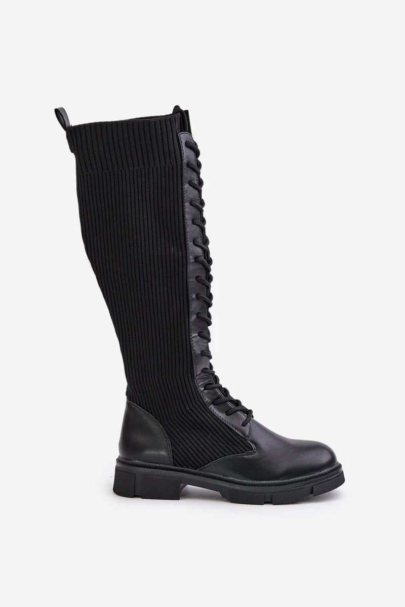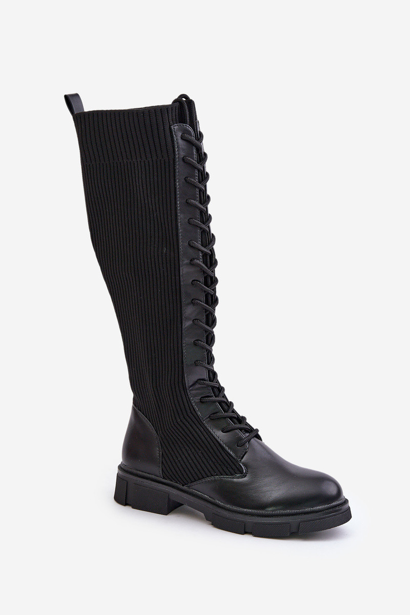 Šněrovací kozačky s elastickým svrškem černé model 21679800 - Boto