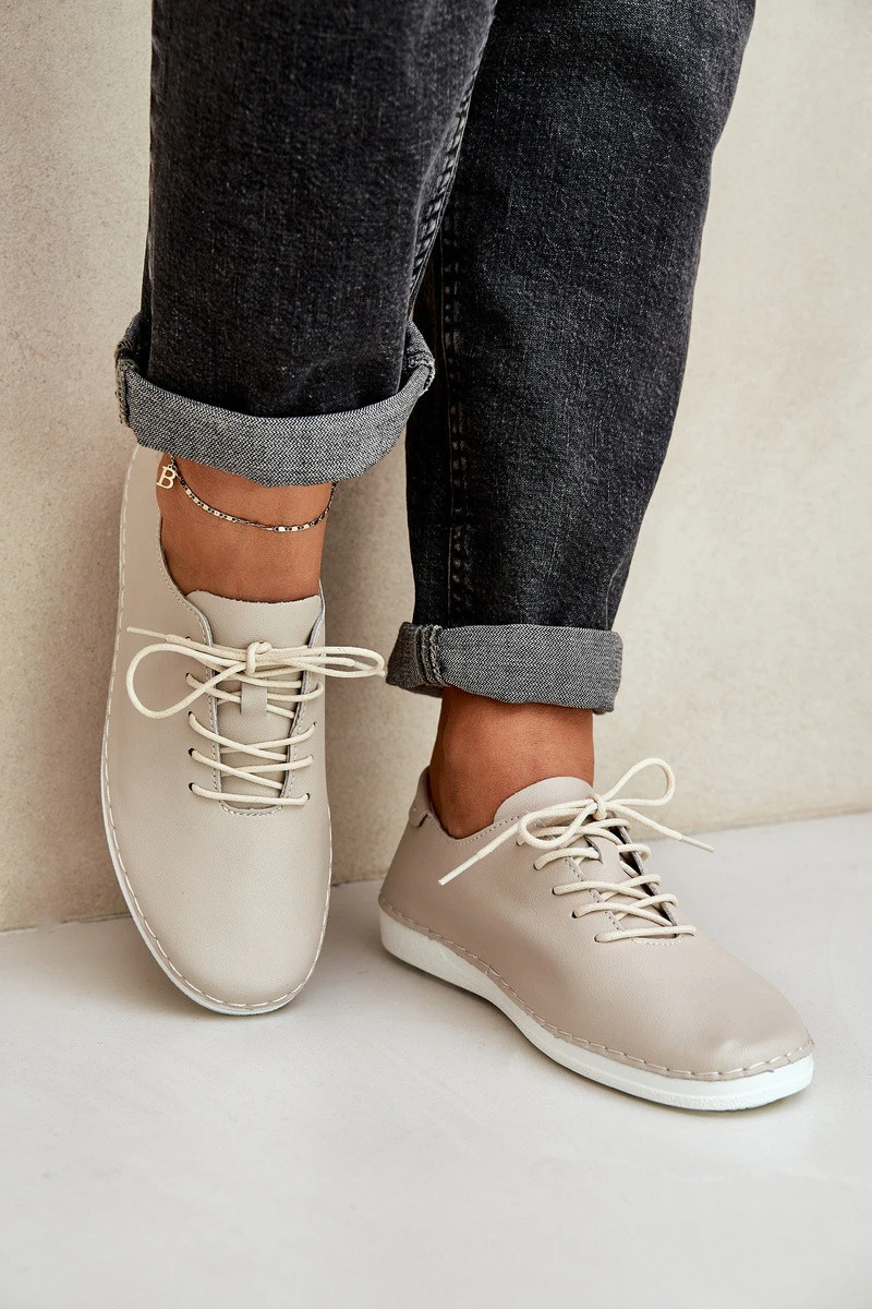 Šněrovací Polobotky Z Přírodní Kůže D&A model 21686119 Béžové - S.Barski