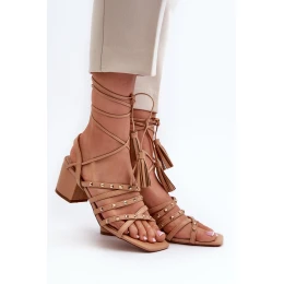 Šněrovací sandály na nízkém podpatku zdobené hřebíčky Camel Chrisele
